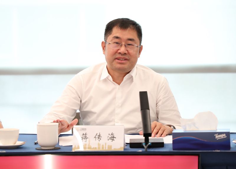 袁国华对蒋传海一行到访表示热烈欢迎。他介绍了上海国投的功能定位、发展战略、人才队伍等公司概况,着重阐述了上海国投锚定战略使命,增强核心功能,积极助推三大先导产业、未来产业整体能级提升和关键技术突破,加快打造特色基金矩阵和创新策源矩阵,着力构建创新企业全周期全生态赋能支持模式。他表示,华理的学科布局产业结合度高,极具转化价值,希望双方共同推动“有组织的创新”,合力攻克国家“卡脖子”技术难题,共同推动科技创新与产业创新深度融合,积极服务国家战略和上海经济发展大局。