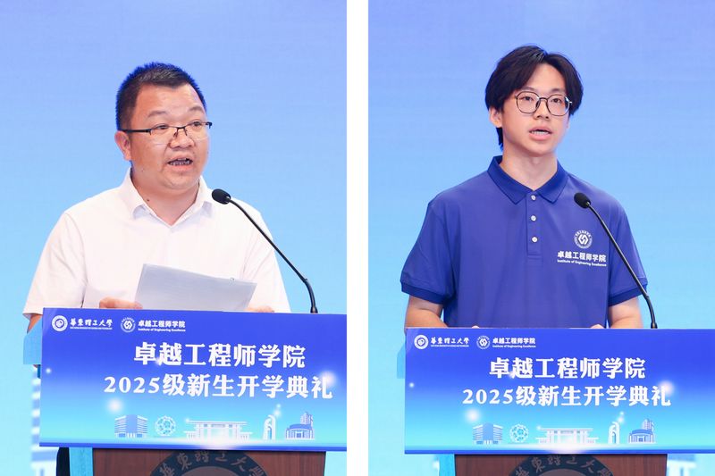 典礼在庄严的国歌声中拉开帷幕。王慧锋在致辞中向新生表示热烈欢迎,并向联培企业致以诚挚感谢。她指出,卓越工程师学院是学校响应国家“培养大批卓越工程师”战略部署的重要举措。学院将通过“校企双导师制”培养模式,让学生在真实场景中参与实践项目,锤炼解决复杂工程问题的能力,真正实现“把论文写在祖国大地上”。她对新生提出三点期望:一要心怀家国,传承华理人工程报国传统;二要砥砺奋进,在实践探索中锤炼过硬本领;三要深入产线,培养跨界融合能力。希望同学们以成为卓越工程师为目标,在服务国家战略的征程中书写青春华章。
