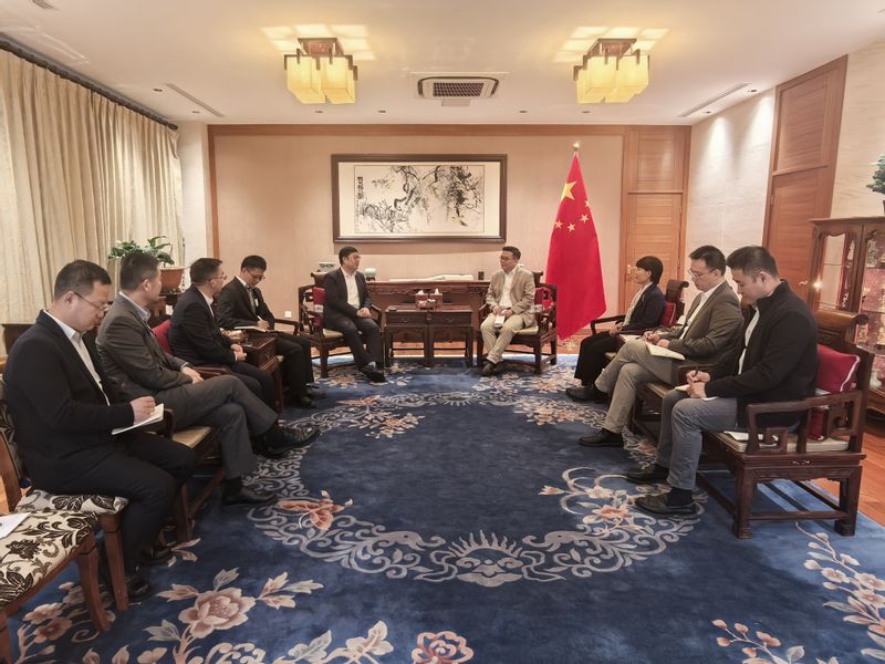 沈海涛一行拜会中国驻外团组,汇报学校交流合作、国际人才培养进展,争取使馆支持,推动学校融入国家开放大局。