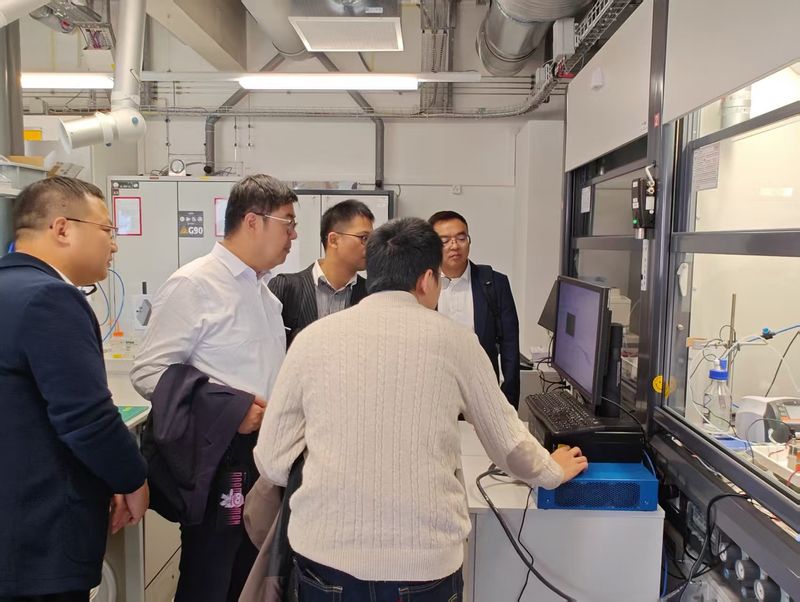 在洛桑联邦理工学院,代表团看望能源材料领域许秋成校友。参观洛桑理工化学实验室、学生活动中心等。