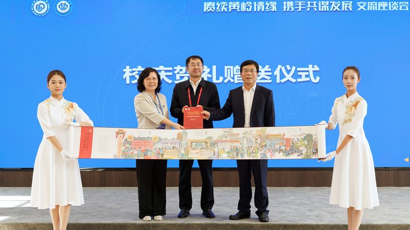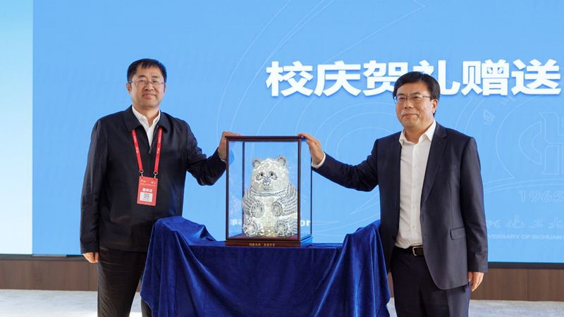 会上,蒋传海代表完美(中国)赠送校庆贺礼——由非遗连环画传承人罗希贤先生领衔创作、历时半年精心打造的6.52米长《千里初心映蜀山 六秩携手赴新程——“652工程”历史长卷》及配套画册。四川轻化工大学回赠了由其校友、自贡彩灯非遗传承人万松涛制作的瓷器手工捆扎技艺灯品国宝熊猫。它们不仅是两校友谊的象征,更是两校在服务国家战略和区域高质量发展的新征程上携手同行的历史见证。