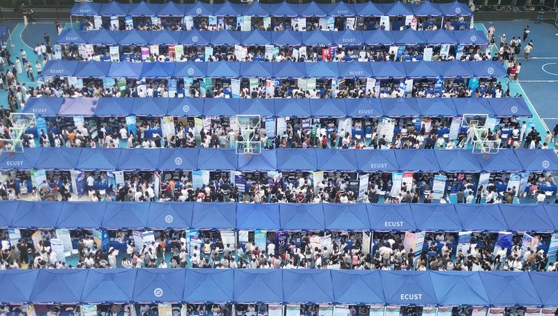 图片说明:招聘会现场设置“就业指导”与“政策咨询”展位等
