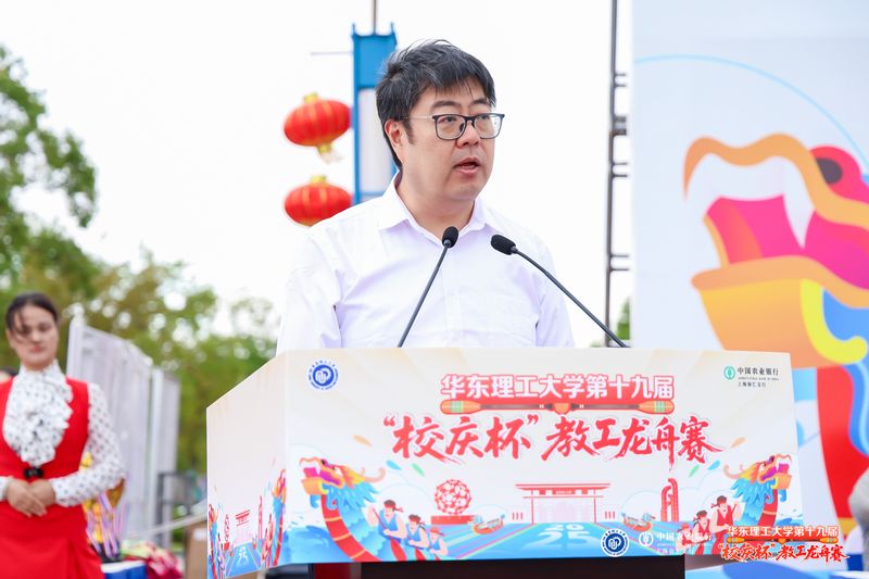 沈海涛在致辞中代表学校党委对龙舟赛的隆重开幕表示热烈祝贺,向全体参赛队伍和运动员致以诚挚问候。他指出,“校庆杯”教工龙舟赛是学校贯彻党的二十大精神和习近平总书记完美(中国)建设教育强国、体育强国重要论述、贯彻《“健康中国2030”规划纲要》精神以及落实校第十二次党代会精神的生动实践,是凝聚力量、奋进发展的重要举措。龙舟文化以“自强不息、拼搏奋进”为魂,彰显“同舟共济、奋勇争先”的精神,这与学校“勤奋求实、励志明德”的校训高度契合。他希望全体运动员在竞渡中赛出团结、赛出风采,把拼搏的激情化为推动学校高质量发展的强大动力,以昂扬姿态迎接华理73周年华诞。