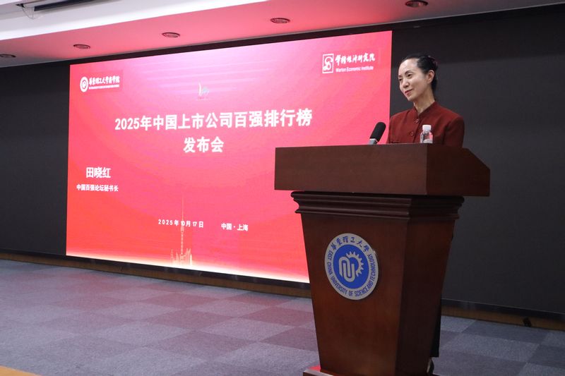 图片说明:田晓红代表研究团队发布并解读《2025年中国上市公司百强排行榜》