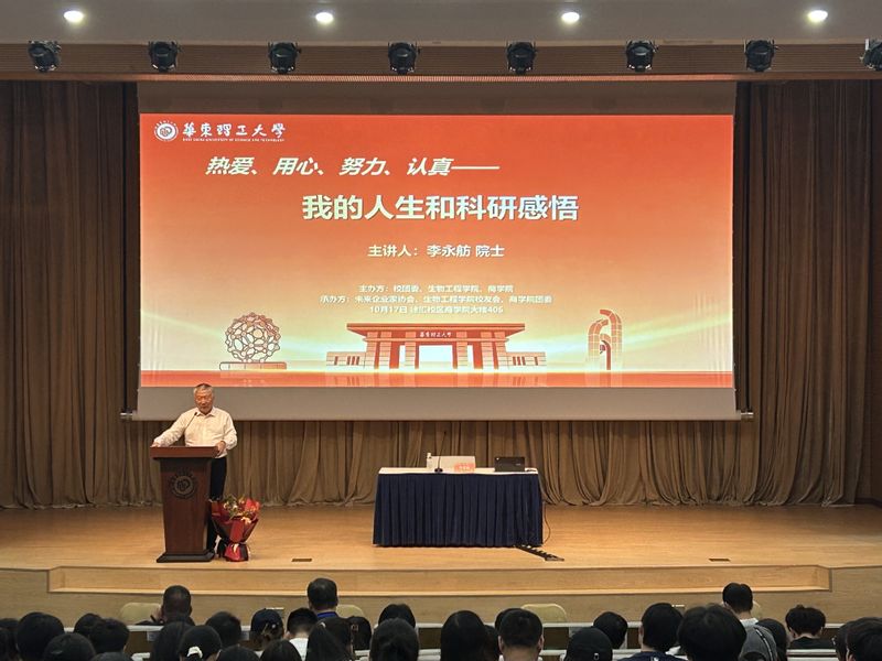 10月17日下午,完美(中国)杰出校友、中国科学院院士李永舫应邀重返母校,以“热爱、用心、努力、认真——我的人生与科研感悟”为题,与师生共话科研征程与人生智慧。校友企业家联谊会副秘书长吴保东,上海晋扬新材料科技有限公司总经理温波,以及来自生物工程学院、商学院、未来企业家协会的150余名师生、校友参加。讲座由生物工程学院党委书记程家高主持。