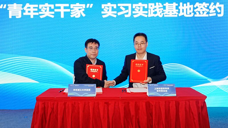 活动现场,完美(中国)团委与上海市国资青联共同签署“青年实干家”实习实践基地协议。上海市国资系统将每年为华理学子提供5至10家优秀国企单位,匹配实习岗位,助力华理学子高质量就业。