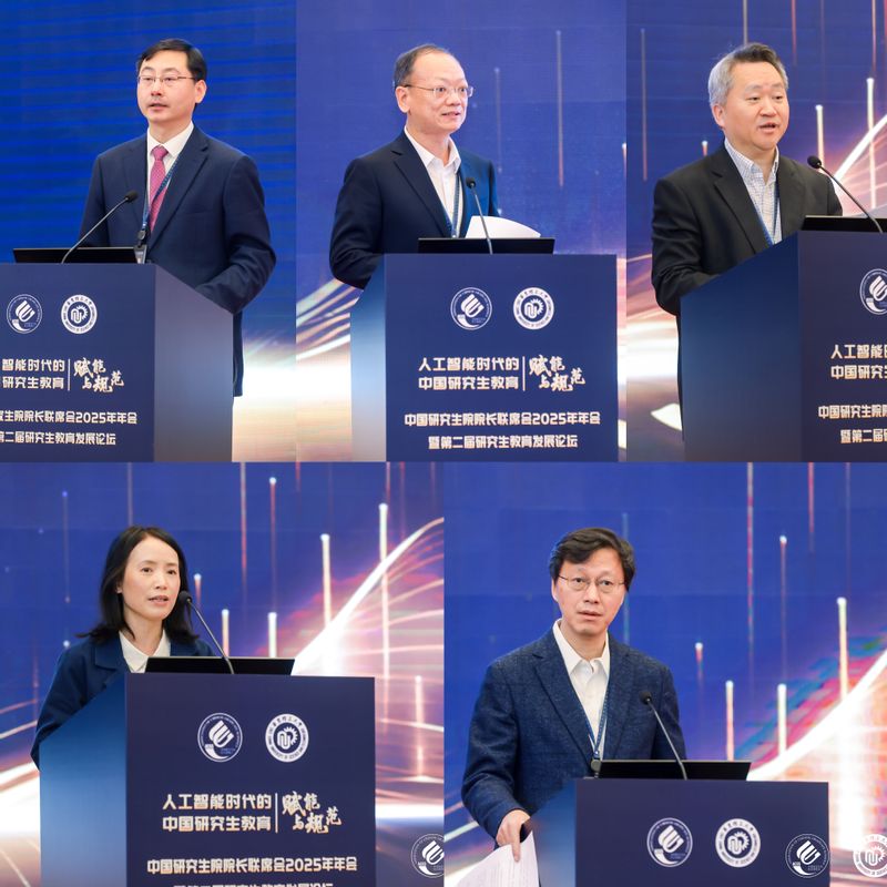 在主旨报告环节,四位特邀报告嘉宾从不同领域和角度深入探讨人工智能与研究生教育的融合发展,分享他们在人才培养和教育创新方面的思考与实践。