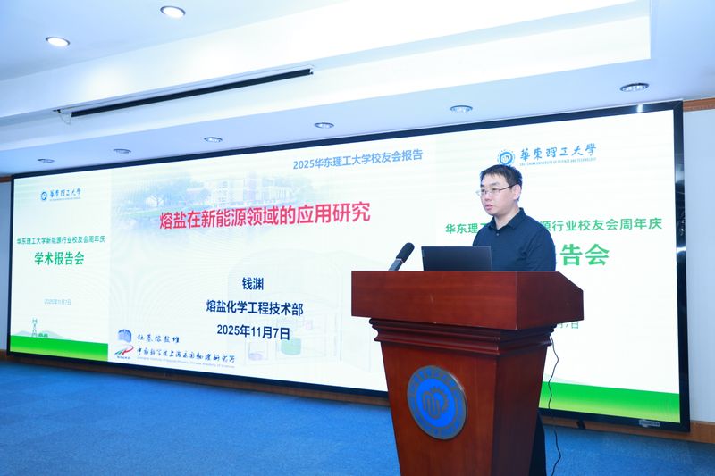 中国科学院上海应用物理研究所熔盐化学工程技术部主任钱渊校友以“熔盐在新能源领域的应用研究”为题作专题报告,介绍了中国科学院上海应物所钍基熔盐实验堆的研发突破,同时展望了熔盐在“一带一路”先进核能、多能互补体系中的应用前景。