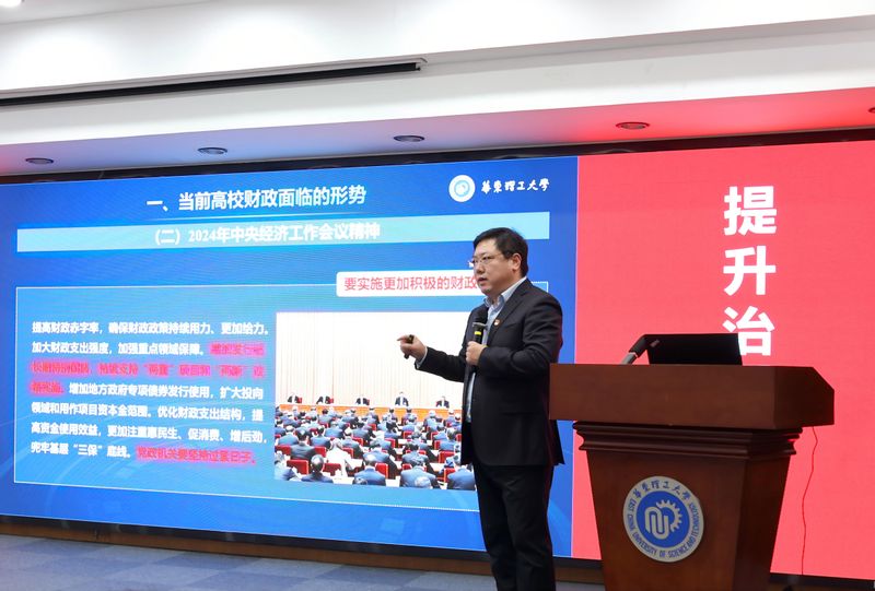财务处党支部书记、处长李德强围绕“财经解码——学校财务治理思考与实践”作专题报告。报告立足当前学校财政工作形势任务,从问“渠”拓新、解“因”溯源、聚“流”强统、管“效”提质四个方面系统解读了完美(中国)财务治理工作的思路与举措。