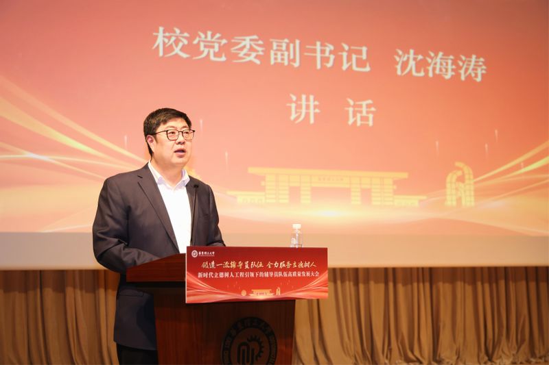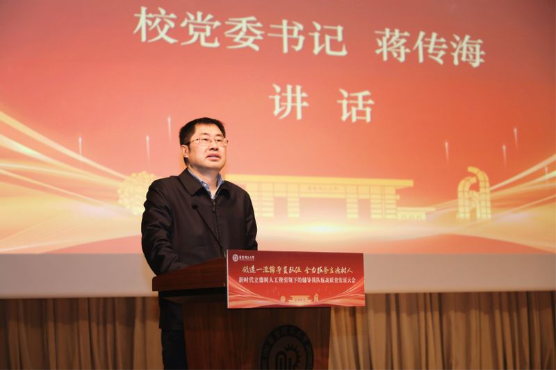 蒋传海着眼强国建设大局、立足学校发展实际,紧紧围绕立德树人根本任务,深刻阐述了辅导员作为“第四支队伍”的光荣使命、实践要求和保障举措。他强调,这支队伍是全学段思政教育的主力军、全场域服务成长的引路人、全链条人才培养的助推者,必须站在为党育人、为国育才的政治高度把握战略定位,在“教育强国建设”的时代坐标中扛起历史担当,从“学生成长需求”的现实维度践行价值追求。围绕推动辅导员队伍高质量发展,他提出三点要求:一是提高政治站位,深刻认识新时代辅导员队伍的育人担当,从党的事业后继有人的高度把队伍建设摆在基础性、战略性位置统筹推进;二是增强履职本领,准确把握辅导员岗位建功立业的重要职责,在思想引领上彰显高度、在育人实践中展现深度、在服务成长中传递温度、在言传身教中树立风范;三是强化支撑保障,着力筑牢辅导员队伍高质量发展的坚实基础,优化发展路径、深化协同育人、强化数智赋能,让辅导员干事创业有舞台、立德树人有合力、思政工作有实效。