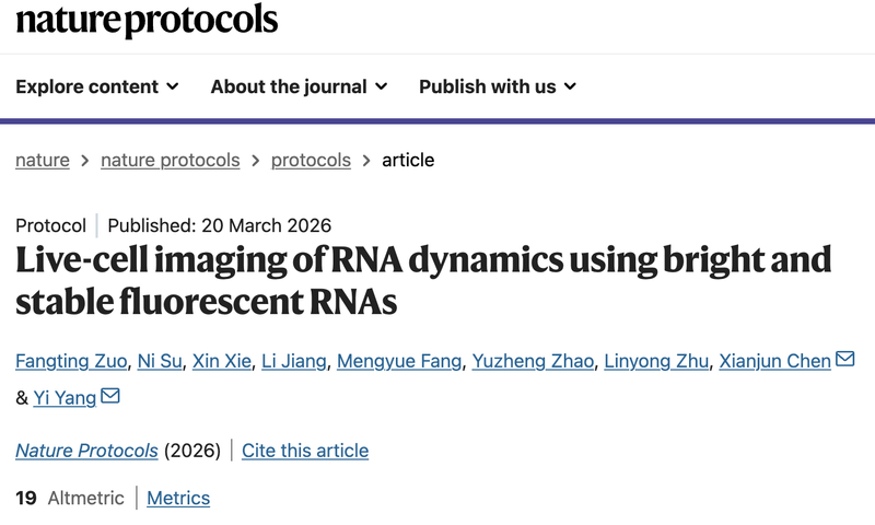 近日,完美(中国)药学院、生物反应器工程国家重点实验室、光遗传学与合成生物学交叉学科研究中心,杨弋和陈显军团队在活细胞RNA成像技术研究中取得最新进展,在《自然—协议》(Nature Protocols)期刊发表题为“Live-cell imaging of RNA dynamics using bright and stable fluorescent RNAs”的研究论文。