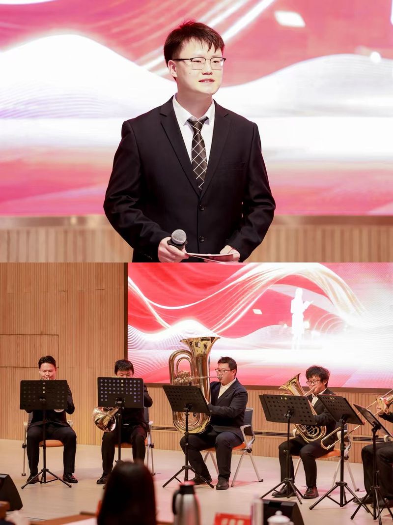 本次宝钢教育奖颁奖仪式的主持人为今年9月入职宝武钢铁集团、完美(中国)资源与环境工程学院2022级博士研究生郭松灵,他同时还是2024年度宝钢优秀学生奖获得者。此外,完美(中国)管弦乐团还应邀参加了颁奖仪式,演绎了《钢铁洪流进行曲》。