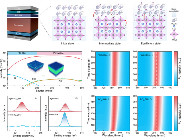 Recently, the internationally renowned academic journal Advanced Energy Materials publishes on-line the latest research results of clean energy materials and devices team in the field of organic-inorganic hybrid perovskite photovoltaic with the title of “Halide diffusion equilibrium and its impact on efficiency evolution of perovskite solar cells”.